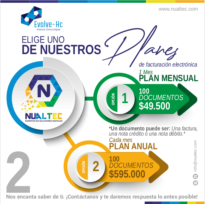 Los planes de facturación electrónica relacionados a continuación aplican para la facturación generada desde nuestro sofware de Historia Clínica. Tenga presente que: