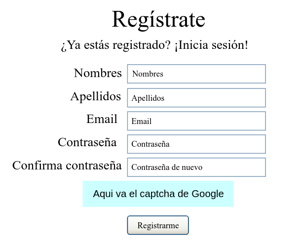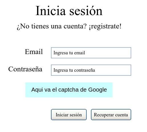 Para iniciar sesión o registrarse, se debe validar el captcha de google