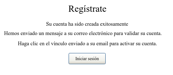 “Hemos enviado un mensaje a su correo electrónico para validar su cuenta. Abra su email y haga clic en el link.”
