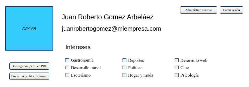 Botón para enviar su perfil en formato PDF su propio correo electrónico