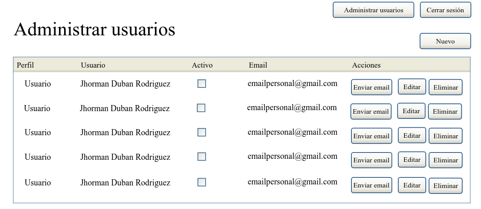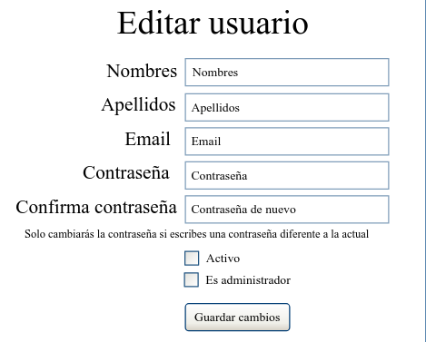 Los datos básicos para que el administrador registre un usuario nuevo son los siguientes. Los mismos datos son los requeridos cuando un usuario externo desee registrarse.